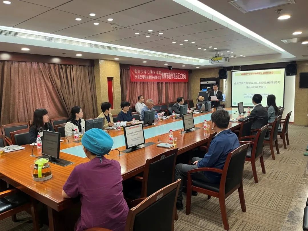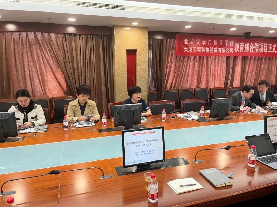 2023年4月24日,在这个春光明媚的日子里,北京大学口腔医院(北大口腔)与乐鱼平台(天堰科技)召开“虚拟仿真在教学实习口腔局部麻醉训练与评估中的开发应用”项目启动会。北大口腔副院长李铁军、中华口腔医学会副秘书长刘宏伟、北大口腔教育处长董美丽、虚拟仿真教研室主任侯建霞、口腔颌面外科副主任贺洋、天堰科技总经理刘雁飞、天堰科技口腔事业部总经理景颖等人出席,在项目总负责人崔念晖主任主持下,双方展开了热烈而有成效的会晤,确定该项目正式启动。